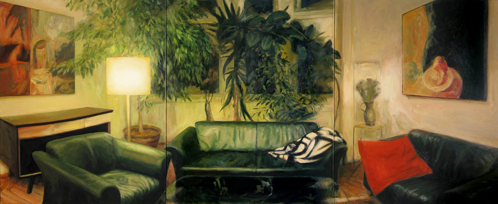 "Wohnzimmer" 2002 150 x 360 cm Öl/Acryl/Leinen 3-teilig